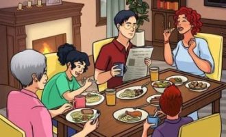 Attēlā redzami trīs sētnieki, kas ziemā sapulcējušies pagalmā zem koka un sarunājas. Neviens no sarunu biedriem pat nepamanīja, ka viens no viņiem ir nopietni apdraudēts.