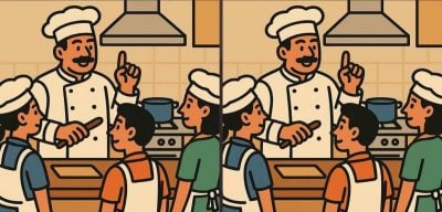 Tātad, vai esat gatavi nākamajam izaicinājumam? Rūpīgi aplūkojiet divus attēlus, kuros redzams šefpavārs, kas virtuvē vada pavārmākslas meistarklases. No pirmā acu uzmetiena var šķist, ka šie attēli ir vienādi, taču, ja iedziļināsieties dziļāk, pamanīsiet 3 nelielas atšķirības, kas ir veikli paslēptas attēlā. Vai spēsiet tās visas atrast tikai 19 sekundēs?