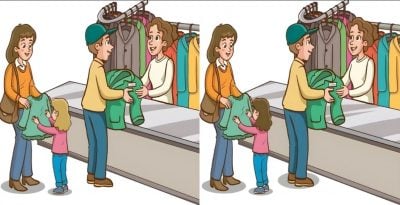 Vai esat gatavi nākamajam izaicinājumam? Aplūkojiet divus attēlus, kuros redzams apģērbu veikals, kurā ģimene iepērkas apģērbu. No pirmā acu uzmetiena bildes izskatās vienādas, bet ieskatieties uzmanīgāk. Ir trīs nelielas atšķirības. Vai jūs domājat, ka varat tās visas atrast 25 sekundēs? Paskatīsimies, cik jūs esat asprātīgi!