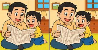 Tātad, vai esat gatavi nākamajam izaicinājumam? Aplūkojiet divus attēlus, kuros tēvs un dēls lasa avīzi. No pirmā acu uzmetiena attēli var šķist vienādi, taču tajos ir paslēptas 3 atšķirības, un tavs uzdevums ir pēc iespējas ātrāk tās atrast. Vai jums izdosies tās visas atrast tikai 45 sekunžu laikā? Mēģini atrisināt šo mīklu un pārliecinies, cik asprātīgs esi!