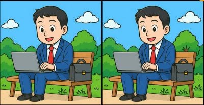 Tātad, vai esat gatavi nākamajam izaicinājumam? Aplūkojiet divus attēlus, kuros redzams vīrietis, kas parkā strādā ar savu klēpjdatoru. No pirmā acu uzmetiena attēli var šķist vienādi, taču tajos ir paslēptas 3 atšķirības, un tavs uzdevums ir pēc iespējas ātrāk tās atrast. Vai jums izdosies tās visas atrast tikai 75 sekundēs? Izmēģiniet šo mīklu un pārbaudiet, cik asa ir jūsu redze!