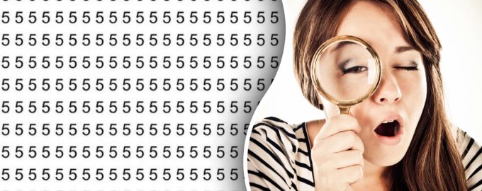 Attēlā redzams daudz ciparu 5, kas izkārtoti rindās un stabiņos. Ja aplūkojat šo attēlu, no pirmajām sekundēm var šķist, ka burta S noteikti nekur nav. Taču šim pirmajam iespaidam nevajadzētu uzticēties – tas tur noteikti ir, tikai nav tik viegli to pamanīt.