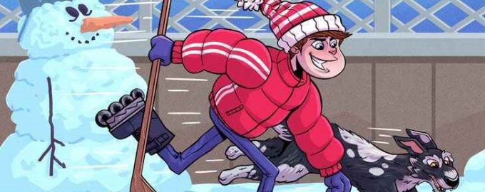 Attēlā redzams zēns, kurš slido pa ledu, un blakus zēnam skrien suns. No pirmā acu uzmetiena var šķist, ka attēlā nav nekādas kļūdas, taču patiesībā tā nav. Ja jūs uzmanīgi ieskatīsieties, jūs sapratīsiet, ka dažas lietas ir nepareizi uzzīmētas.