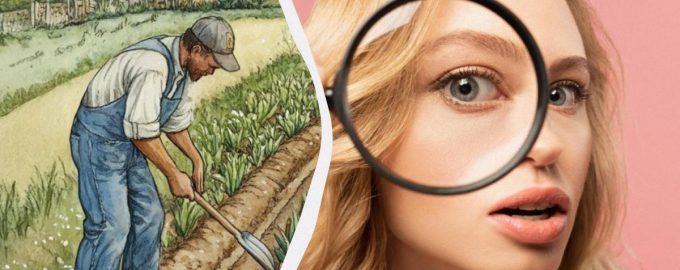 Jūs uzreiz ieraudzīsiet lauku pie gleznaina ciemata un trīs vīriešus, kas strādā brīvā dabā. Jums ir jānosaka, kas šajā attēlā ir nepareizi.