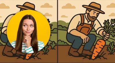Rūpīgi aplūkojiet divus attēlus, kuros redzams lauksaimnieks, kas novāc burkānus.