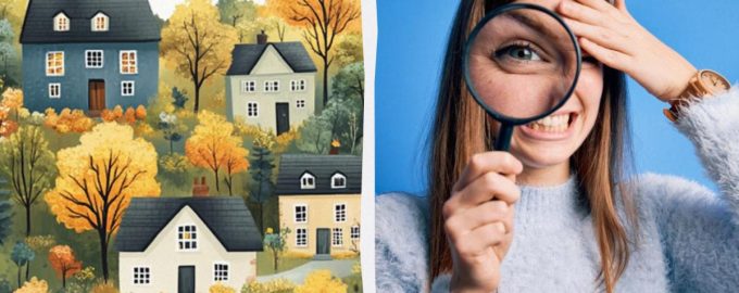 Zemāk redzēsiet attēlu, kurā attēlots dzīvojamais rajons ar mājīgām mājām un krāsainiem kokiem. Tavs uzdevums ir atrast stārķus starp šo skaistumu.