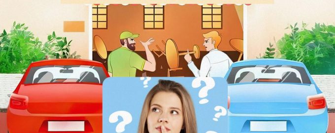 Zemāk redzēsiet attēlu, kurā attēlots sabojāts restorāns un divas automašīnas. Autovadītāji cīnās par to, kurš izraisījis šo haosu. Katrs apsūdz otru, ka tas ir izraisījis negadījumu.