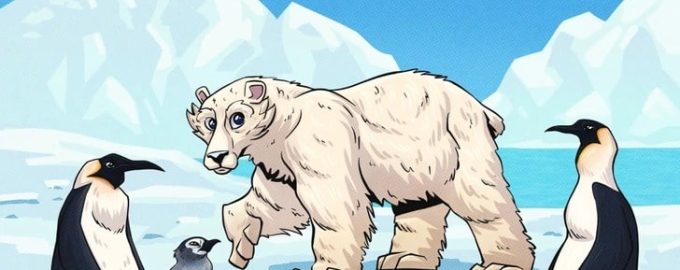 Attēlā redzams polārlācis un pingvīni. Šķiet, nekas neparasts. Taču kaut kas attēlā nav tā, kā tam vajadzētu būt.