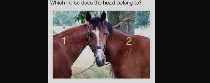 Optiskajā ilūzijā redzami divi zirgi, no kuriem viens ir pagriezies, lai skatītos kamerā. Izaicinājums ir noskaidrot, kurš zirgs skatās uz jums.