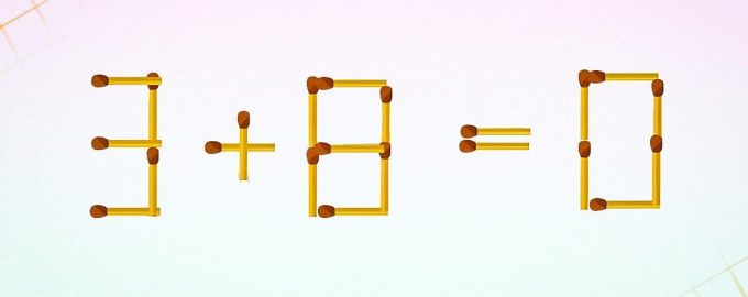 Kā redzams, lai matemātiskā izteiksme kļūtu pareiza, mums no nulles ir jāatņem apakšējā un augšējā sakritība, un tad mēs iegūstam pareizu vienlīdzību: 3+8=11.