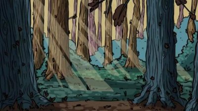 Attēlā redzams mežs vēlā rudenī, uz kokiem nav lapu. Kaut kur ir paslēpta pūce, un mums tā ir jāatrod.