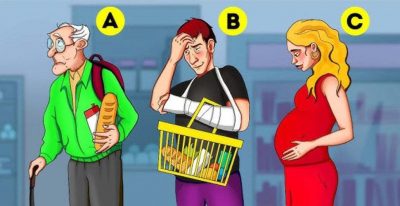 Iedomājieties: jūs atrodaties pārtikas preču veikalā, kur par zādzību tiek turēti aizdomās trīs cilvēki – pensionārs, vīrietis ar salauztu roku un grūtniece. Tie ir tie, kurus mēs tagad redzam attēlā.